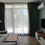 The self-catering facilities feature an equipped kitchenette with an electric kettle, an oven, and glassware. Guests can dine in the café La Crema, located at a distance of 1.2 km from the apartment. The nearest bus stop Burgas Airport is a walk from the 2-bedroom apartment. You can enjoy a terrace facing the sea.